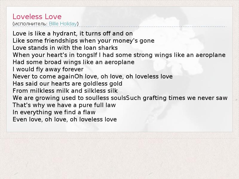 А как ты думаешь, о чем песня "Loveless Love" ?