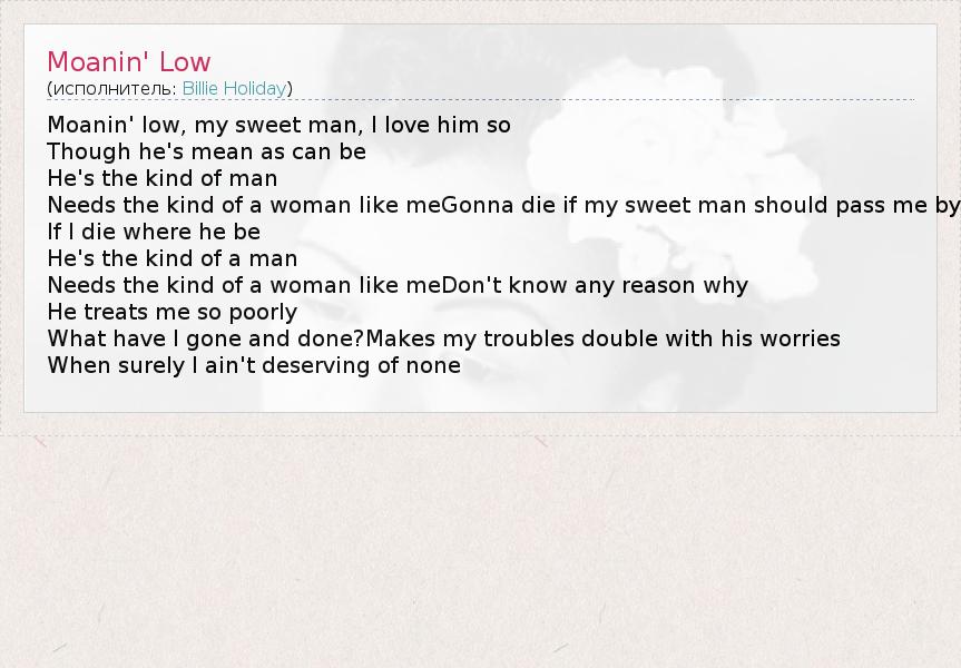 А как ты думаешь, о чем песня "Moanin' Low" ?