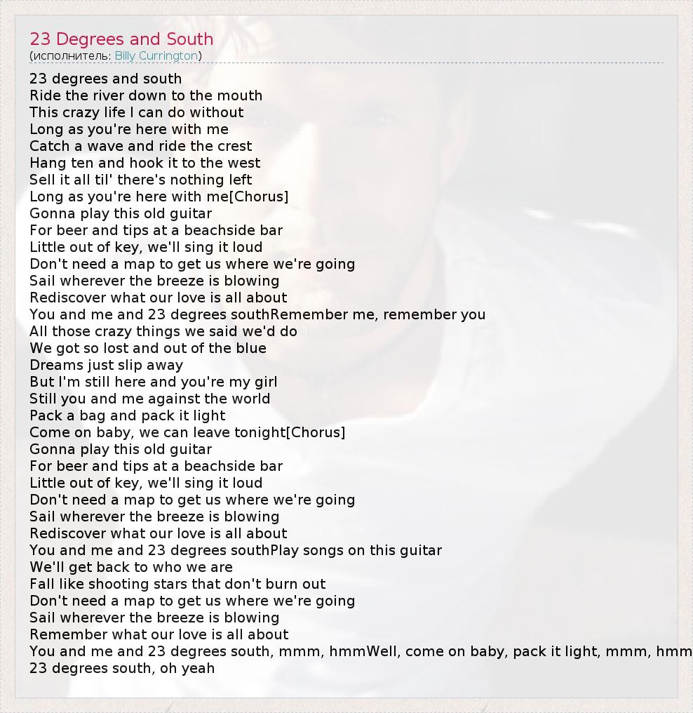 А как ты думаешь, о чем песня "23 Degrees and South" ?