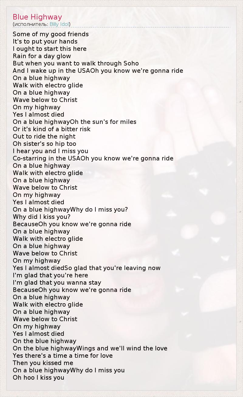 А как ты думаешь, о чем песня "Blue Highway" ?