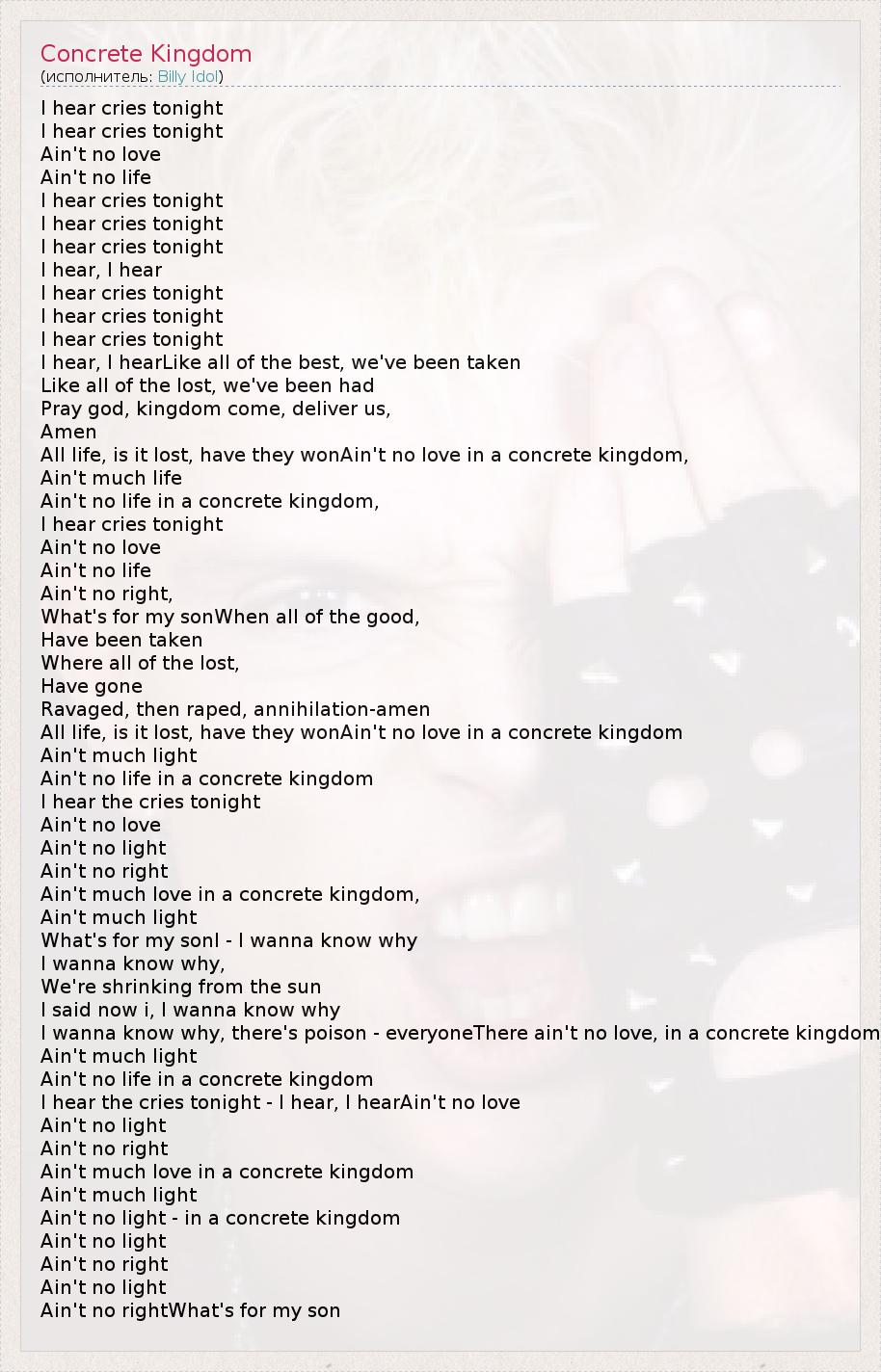 I wanna know why, there's poison - everyoneThere ain't no love, in a concrete kingdom