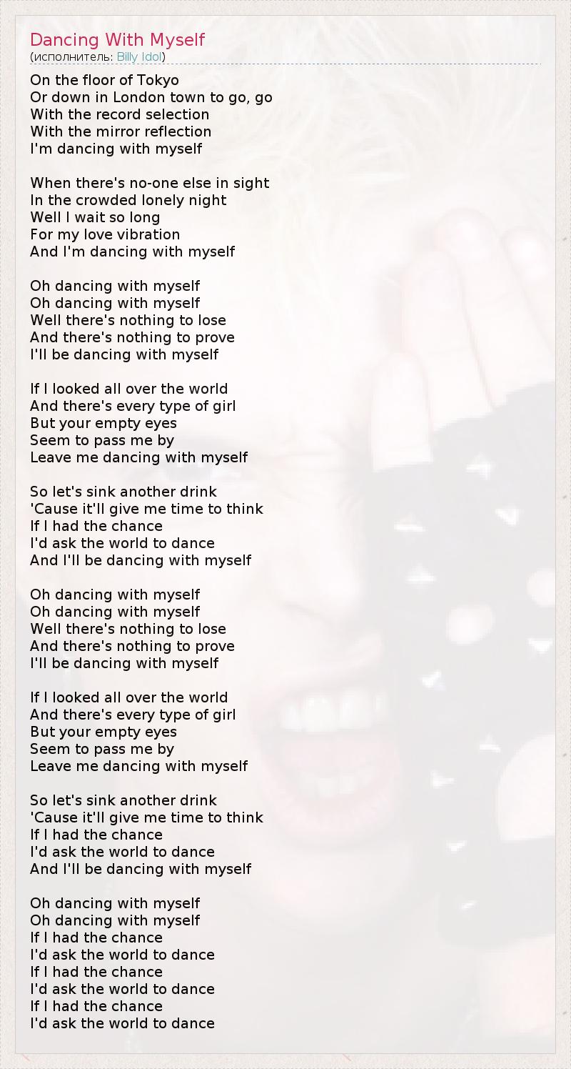 А как ты думаешь, о чем песня "Dancing With Myself" ?