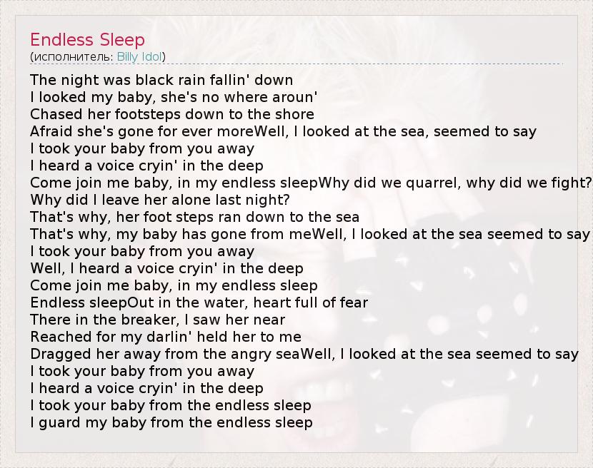 А как ты думаешь, о чем песня "Endless Sleep" ?