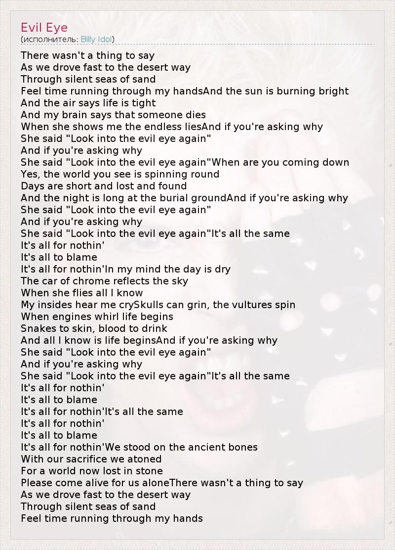 А как ты думаешь, о чем песня "Evil Eye" ?