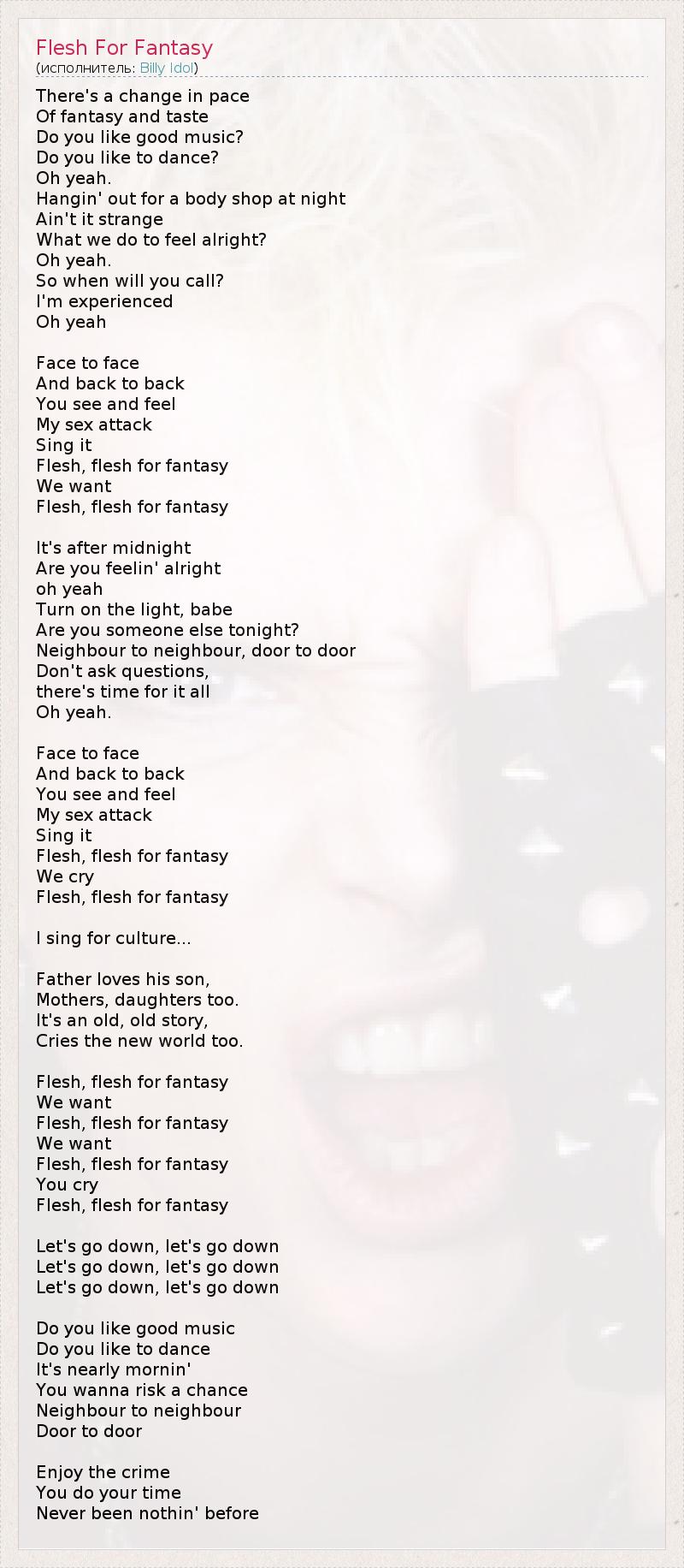 А как ты думаешь, о чем песня "Flesh For Fantasy" ?