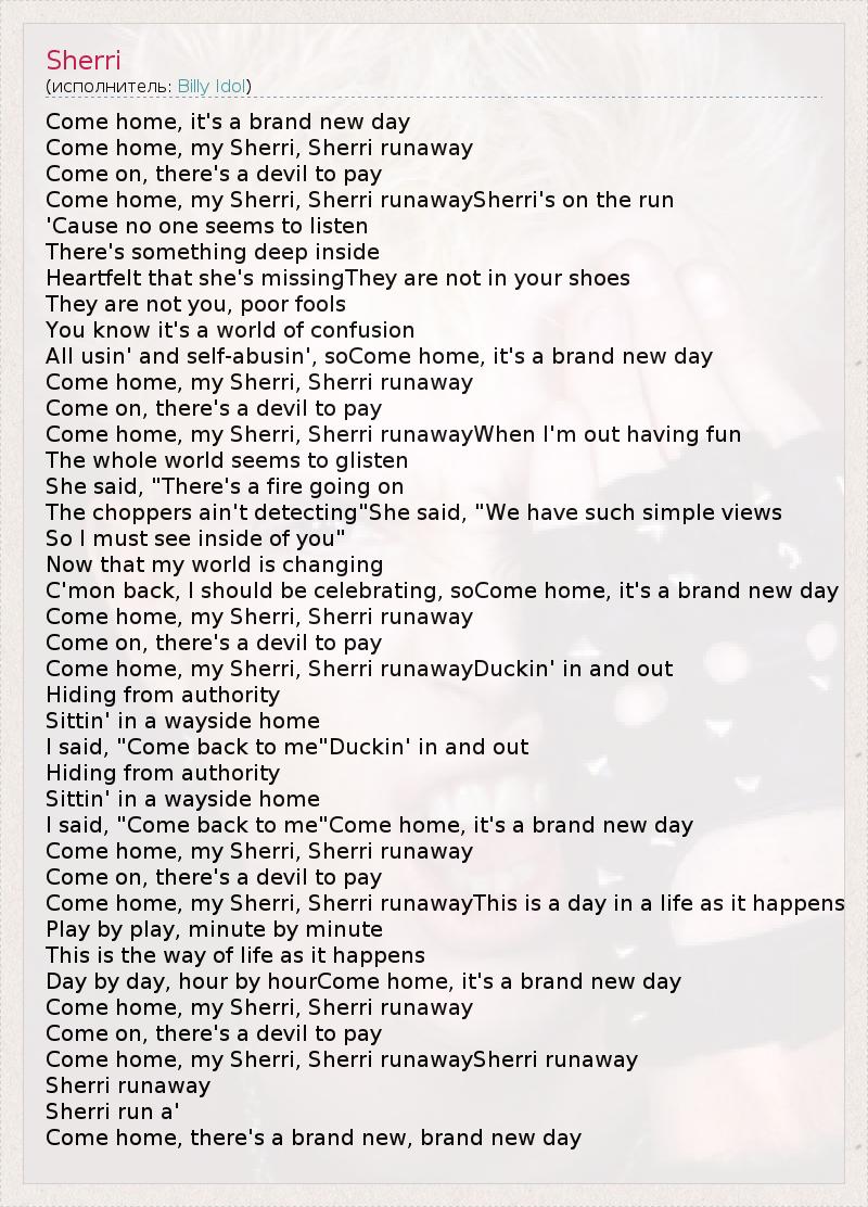 Come home, my Sherri, Sherri runawaySherri's on the run