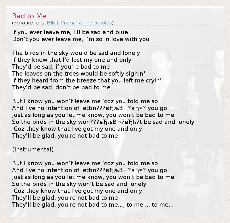 А как ты думаешь, о чем песня "Bad to Me" ?