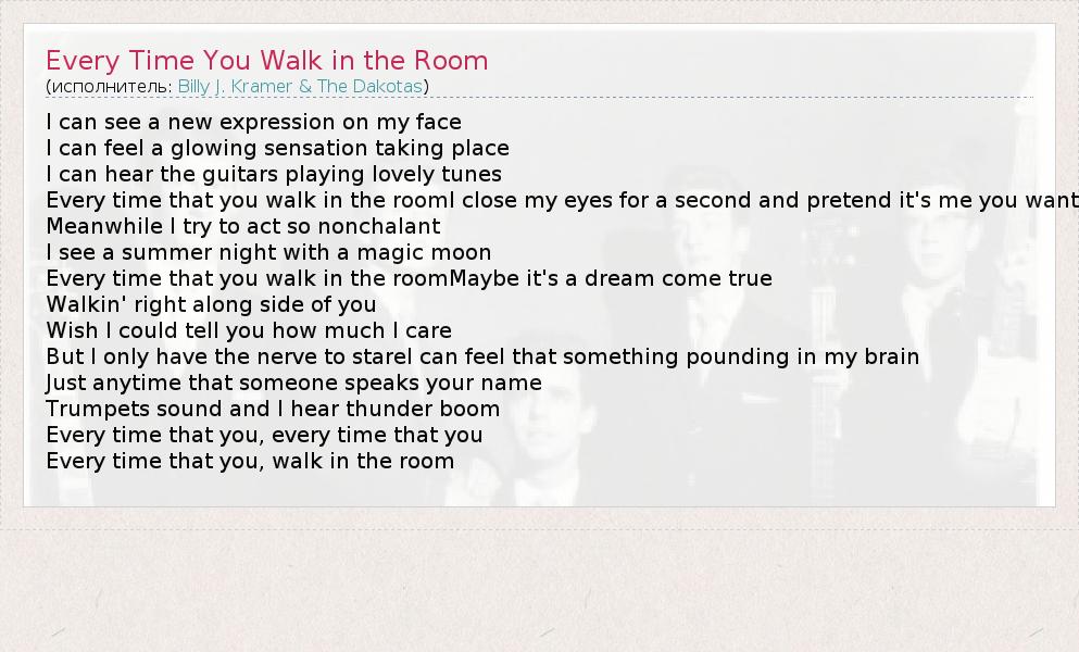А как ты думаешь, о чем песня "Every Time You Walk in the Room" ?