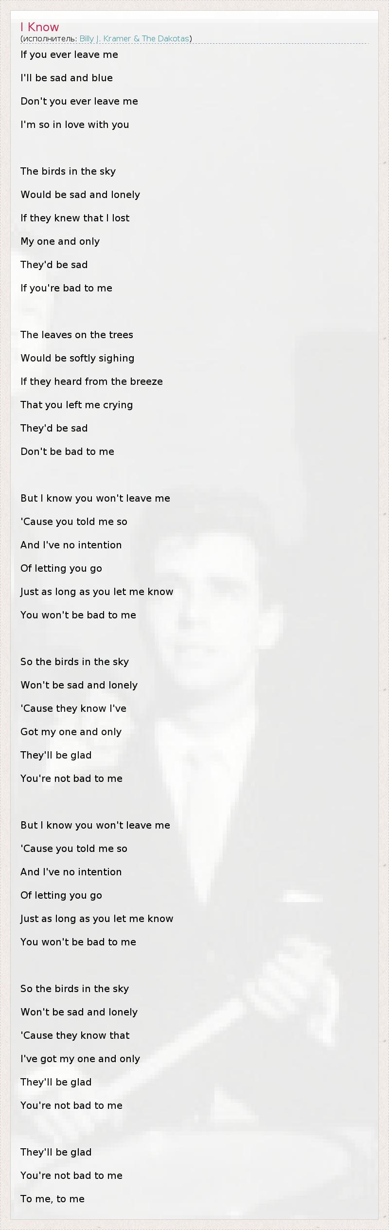 Это интересно:БИЛЛИ ДЖЕЙ КРАМЕР ЭНД ДАКОТАС (Billy J. Kramer and The Dakotas), английская рок-группа. Хотя BILLY J. KRAMER AND THE DAKOTAS и вошли в историю как одна из наиболее известных групп мерси-бита, сам Билли Джей был эстрадным крунером, каких было много в добитловской Британии. По иронии случая, своим успехом группа была в значительной степени обязана тесным контактам с THE BEATLES: у них были общие менеджер и продюсер, а большая... продолжение