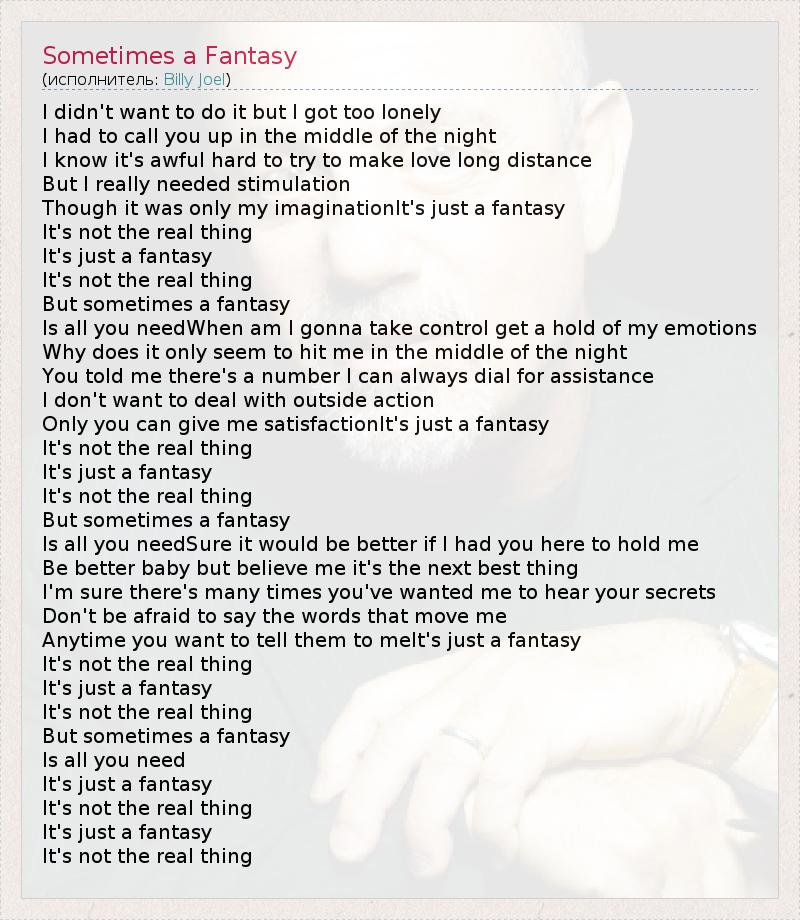 А как ты думаешь, о чем песня "Sometimes a Fantasy" ?