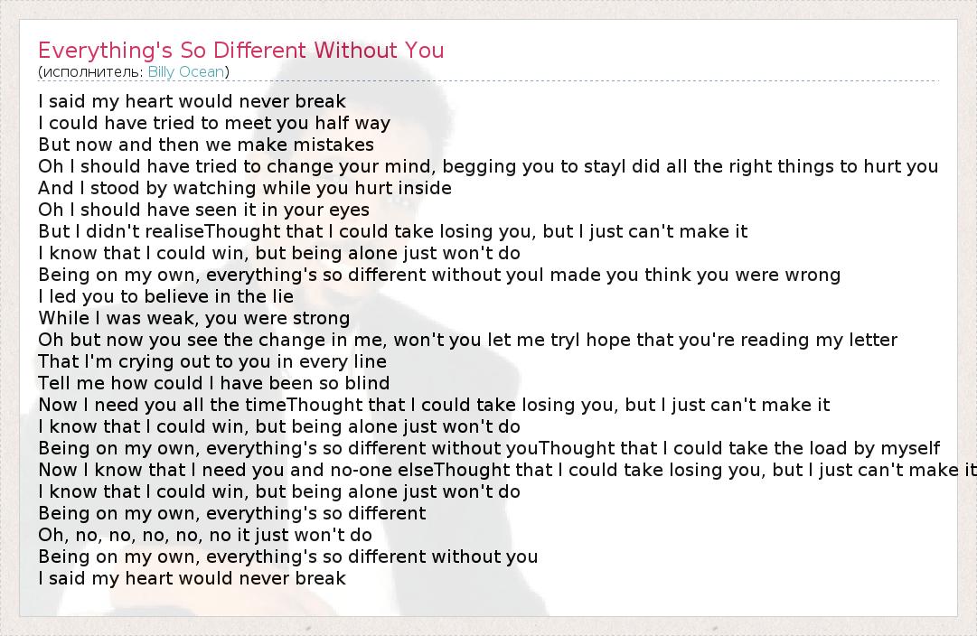 ГлавнаяИсполнителиBilly OceanEverything's So Different Without You