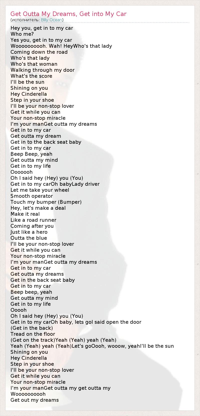 ГлавнаяИсполнителиBilly OceanGet Outta My Dreams, Get into My Car
