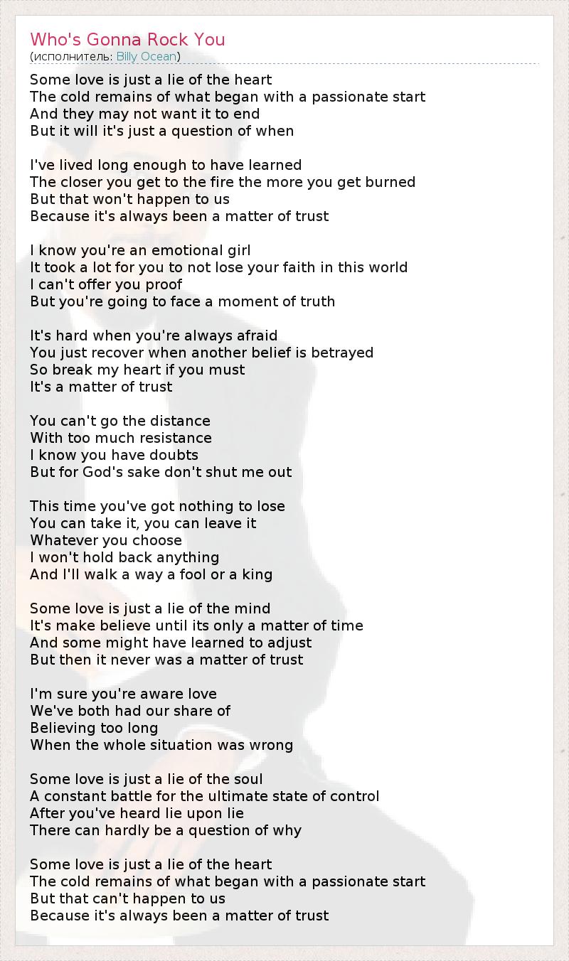 А как ты думаешь, о чем песня "Who's Gonna Rock You" ?