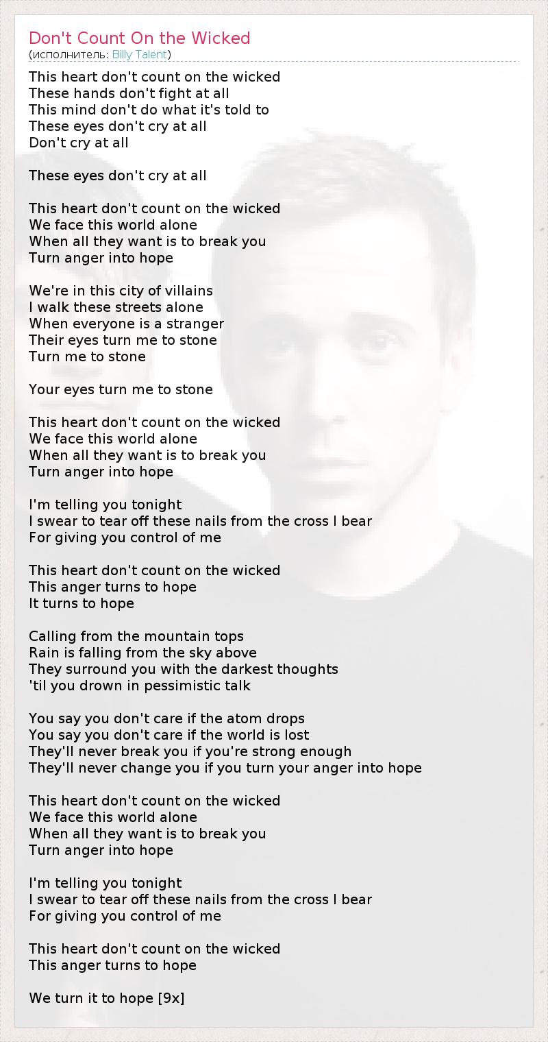 ГлавнаяИсполнителиBilly TalentDon't Count On the Wicked