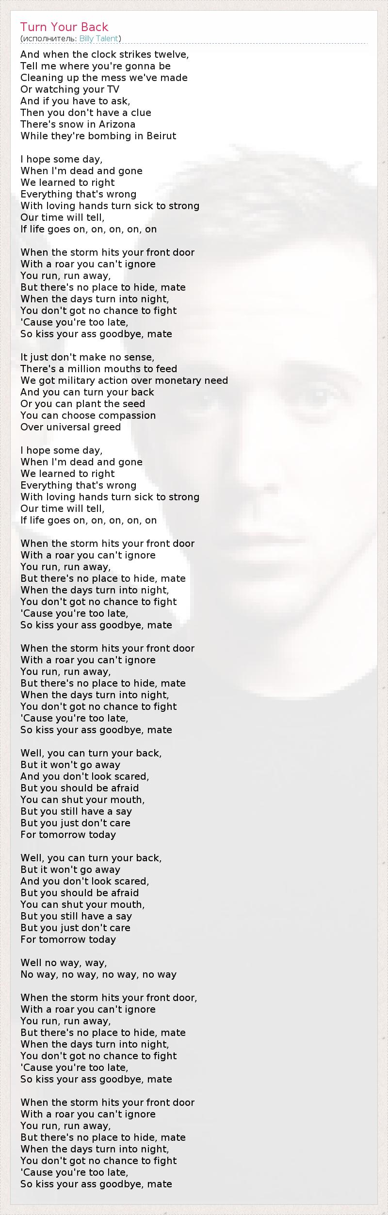 А как ты думаешь, о чем песня "Turn Your Back" ?