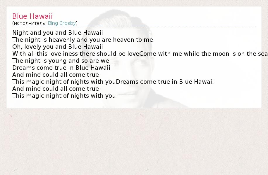 А как ты думаешь, о чем песня "Blue Hawaii" ?
