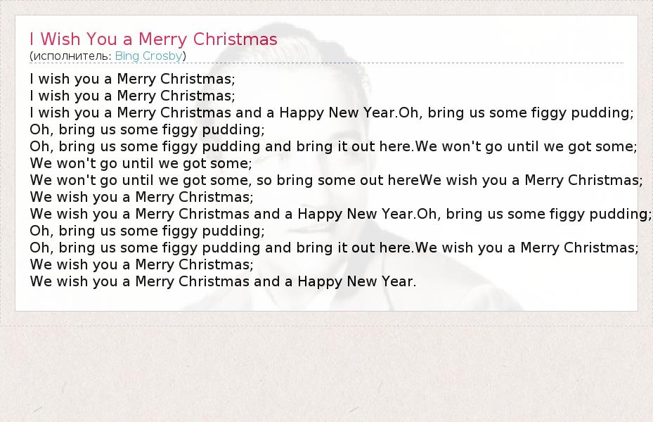 А как ты думаешь, о чем песня "I Wish You a Merry Christmas" ?