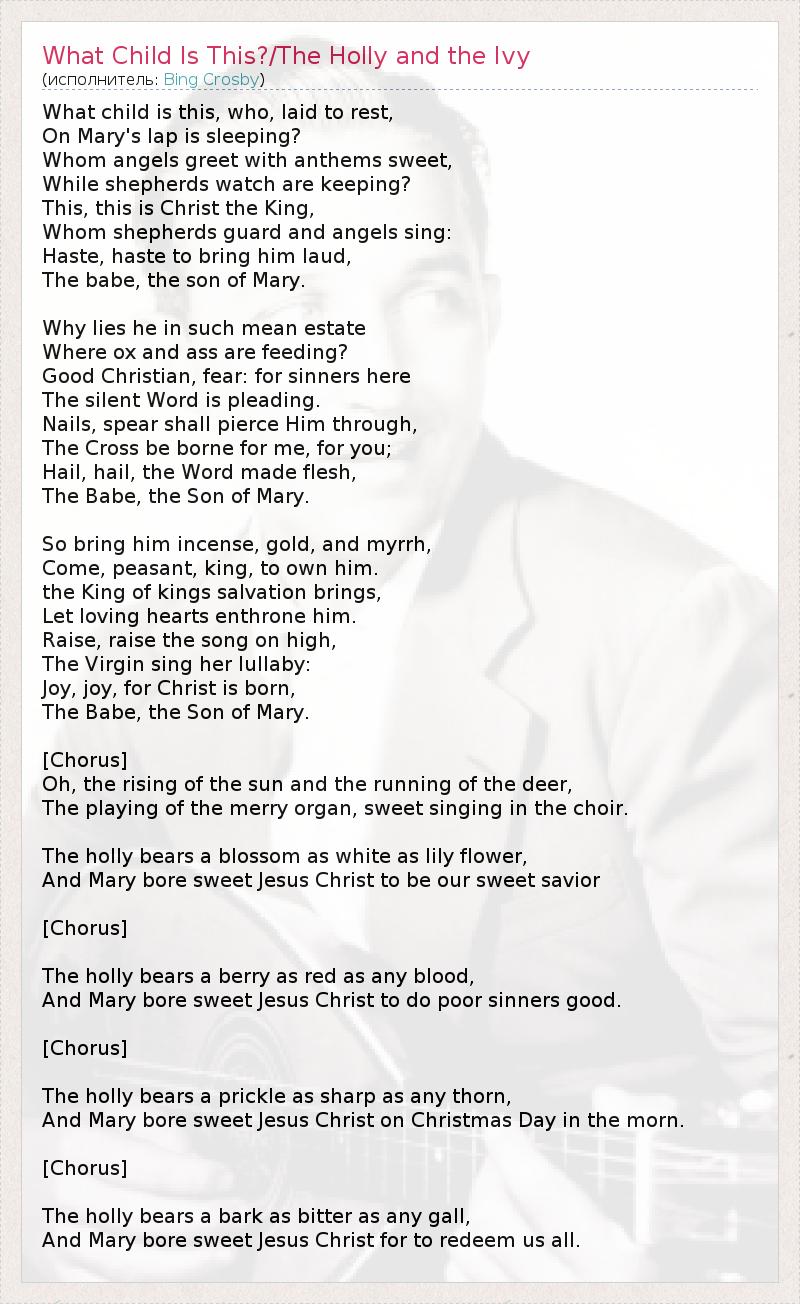 А как ты думаешь, о чем песня "What Child Is This?/The Holly and the Ivy" ?