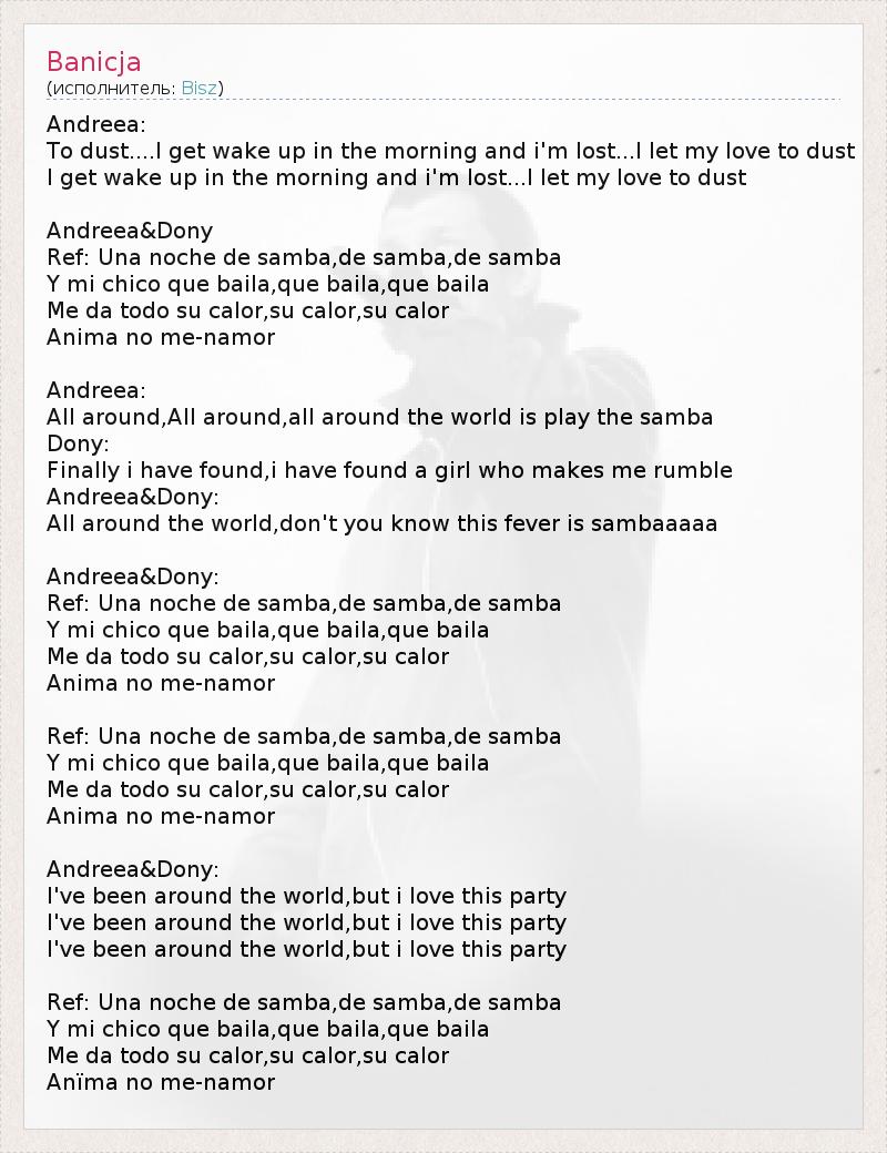 To dust....I get wake up in the morning and i'm lost...I let my love to dust