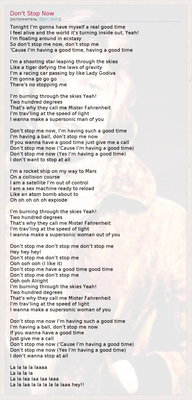 А как ты думаешь, о чем песня "Don't Stop Now" ?
