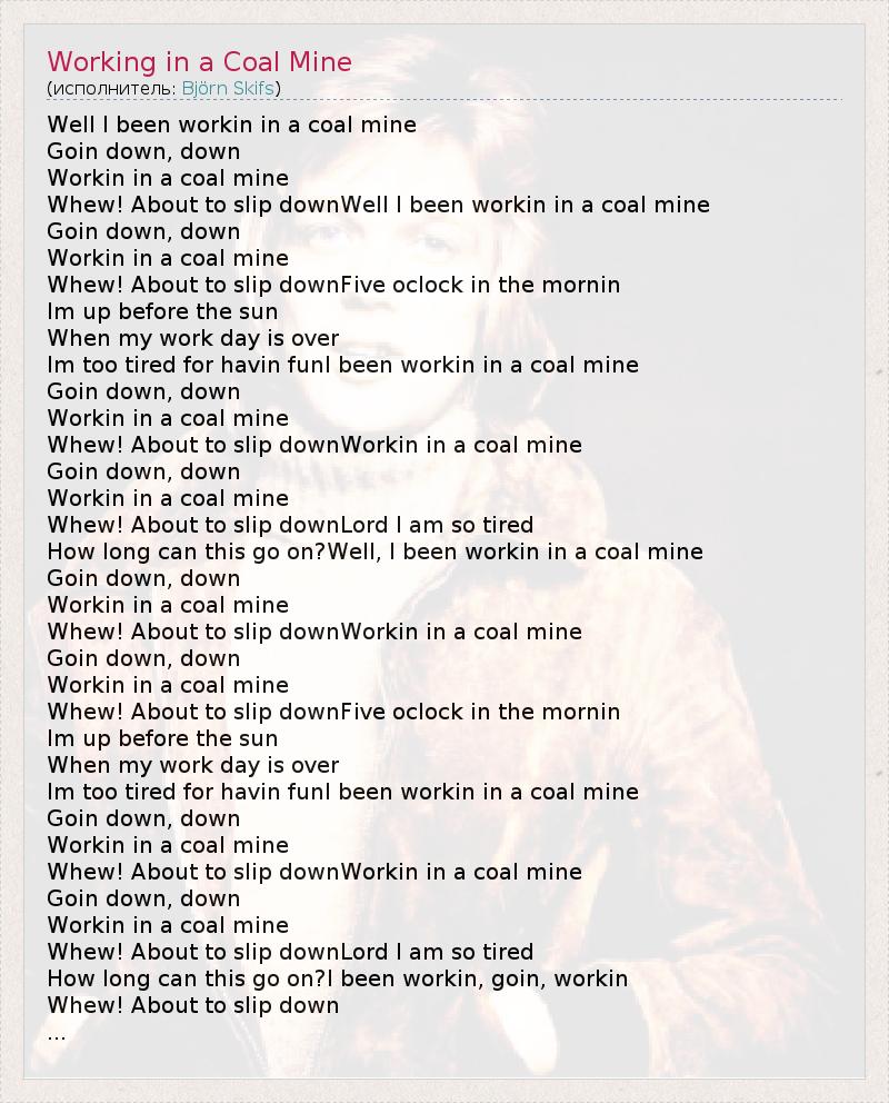 А как ты думаешь, о чем песня "Working in a Coal Mine" ?