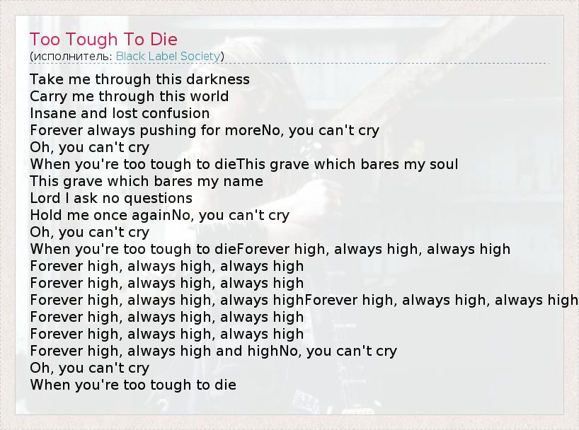 А как ты думаешь, о чем песня "Too Tough To Die" ?