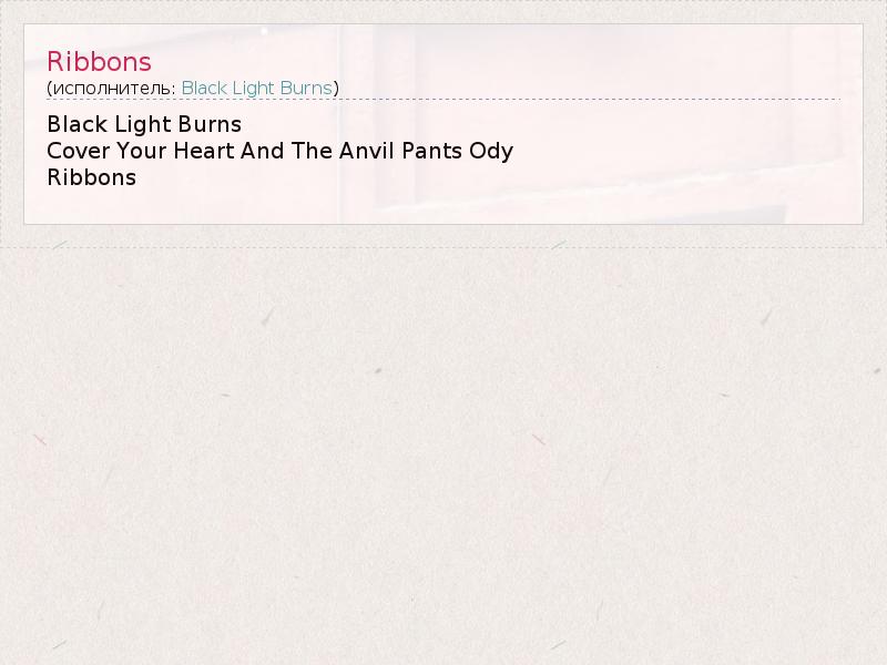 Это интересно:Black Light Burns - это проект Уэса Борланда (гитариста Limp Bizkit, гитара и вокал), в состав которого вошли также Дэнни Лонер из Nine Inch Nails (бас), Джошуа Юстис (клавишные) из Telefon Tel Aviv и Джош Фриз (ударные) из A Perfect Circle / Vandals.Летом 2007 года группа выпустила дебютный альбом Cruel Melody. Альбом был смесью индастриала... продолжение