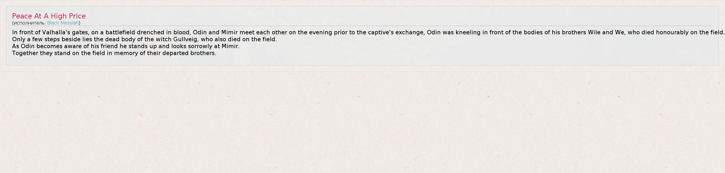 А как ты думаешь, о чем песня "Peace At A High Price" ?
