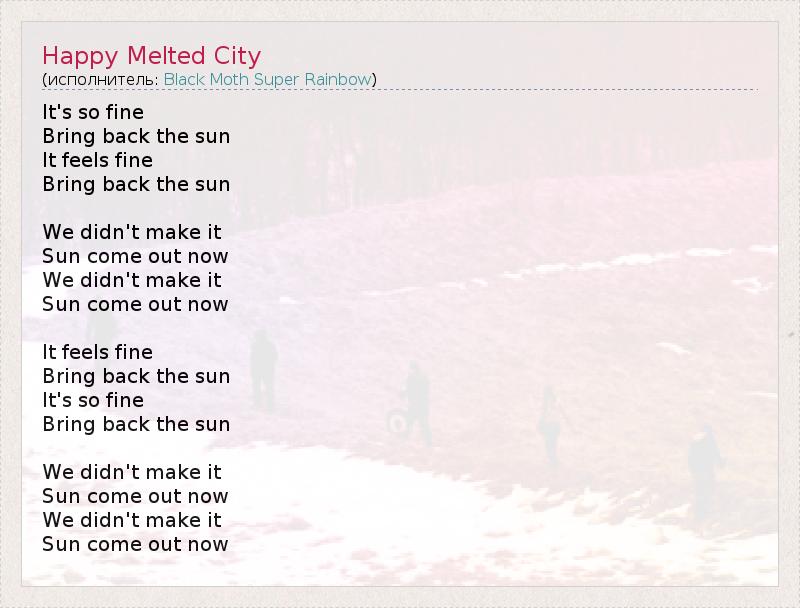 А как ты думаешь, о чем песня "Happy Melted City" ?