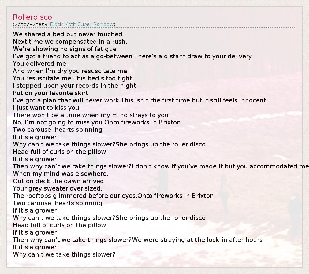 А как ты думаешь, о чем песня "Rollerdisco" ?