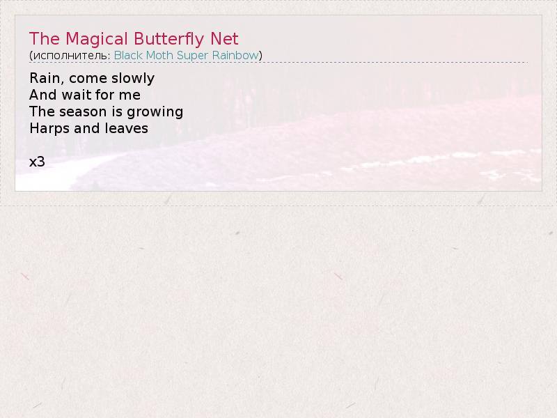 А как ты думаешь, о чем песня "The Magical Butterfly Net" ?