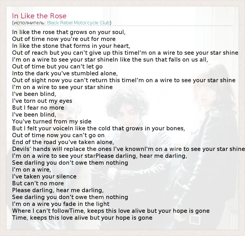 А как ты думаешь, о чем песня "In Like the Rose" ?