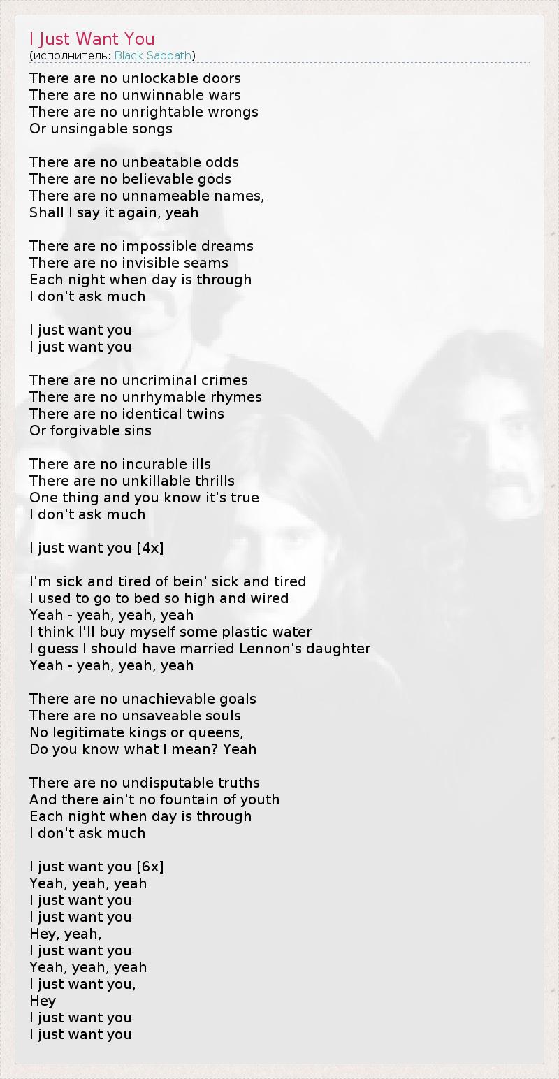 А как ты думаешь, о чем песня "I Just Want You" ?