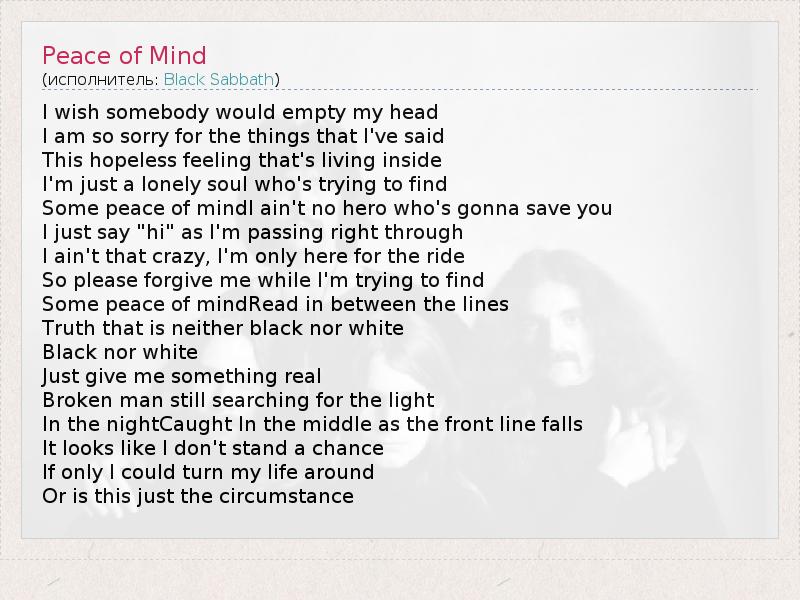 А как ты думаешь, о чем песня "Peace of Mind" ?