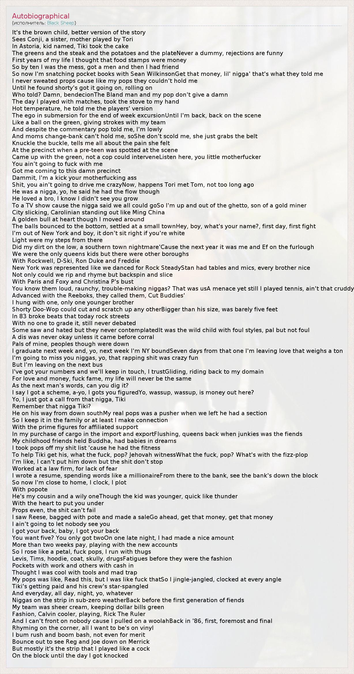А как ты думаешь, о чем песня "Autobiographical" ?
