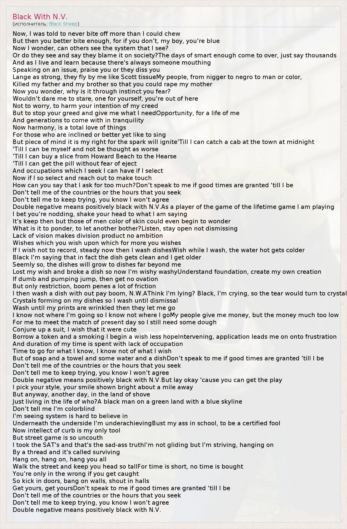 А как ты думаешь, о чем песня "Black With N.V." ?