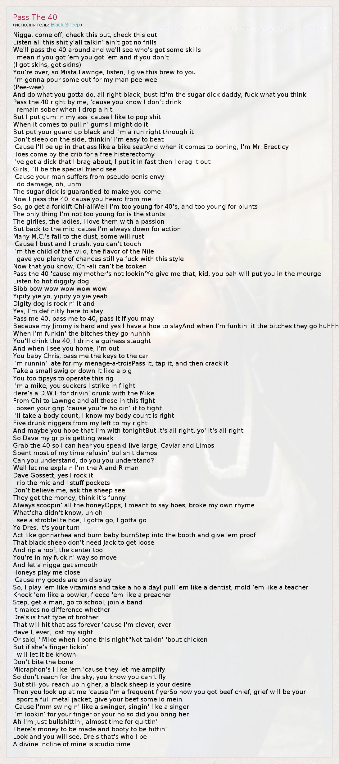 А как ты думаешь, о чем песня "Pass The 40" ?