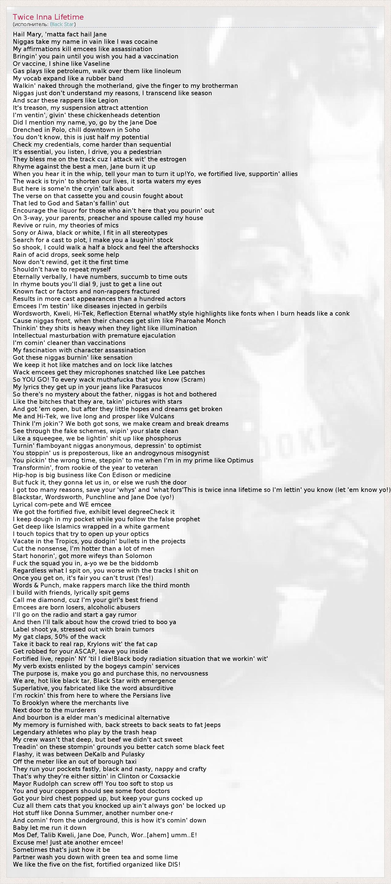 А как ты думаешь, о чем песня "Twice Inna Lifetime" ?