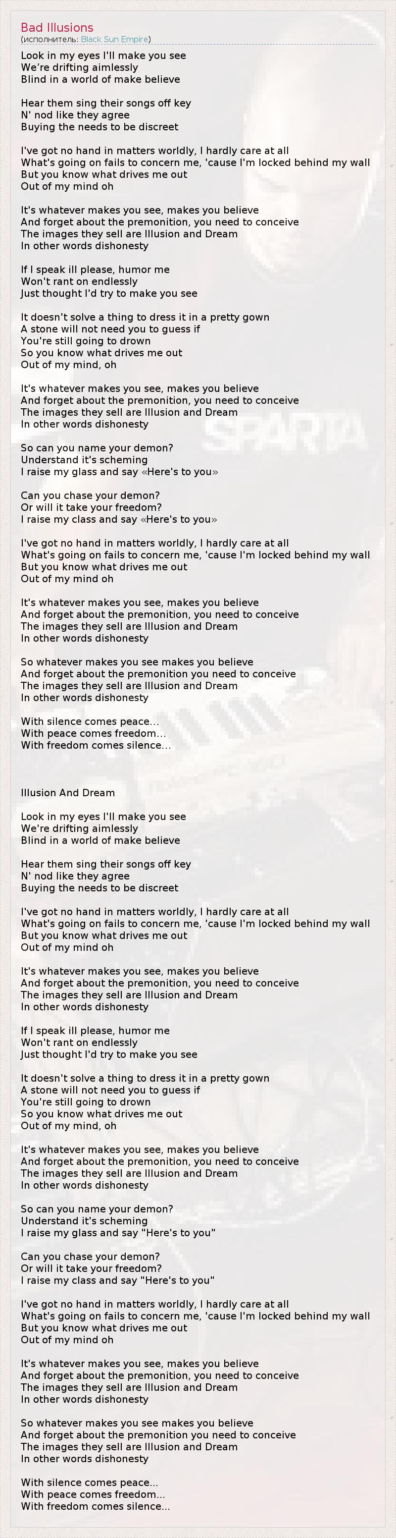 А как ты думаешь, о чем песня "Bad Illusions" ?