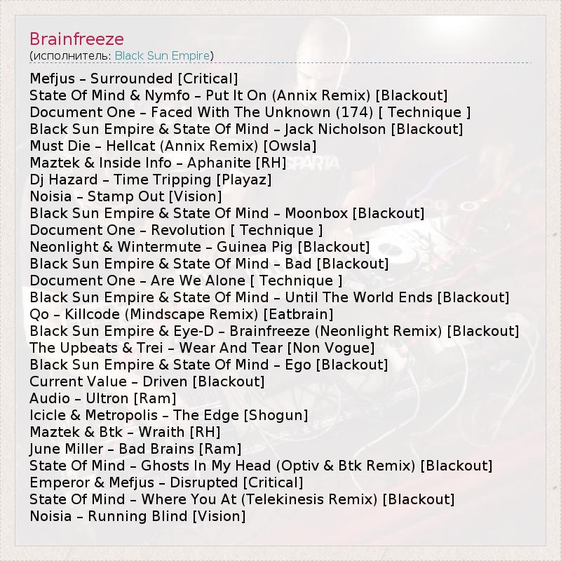 Это интересно:Black Sun Empire (сокращённо BSE, название Black Sun заимствовано из вселенной «Звёздных Войн») — группа электронной музыки в жанре драм-энд-бэйс базирующийся в городе Утрехт, Нидерланды. Состав — Рене Вердюлт и братья Миша и Милан Хейбур. Совместную работу музыканты начали ещё в 1995 году, но широкую известность получили лишь в 1999 году с публикацией работ на таких лейблах, как Piruh и A New Dawn.Прорывом... продолжение