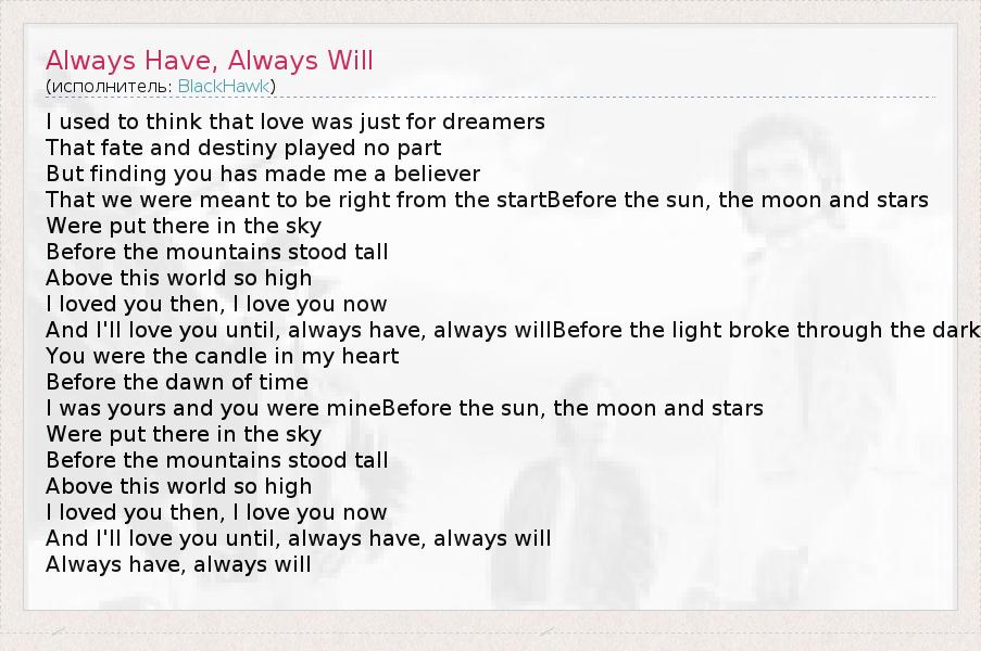 А как ты думаешь, о чем песня "Always Have, Always Will" ?