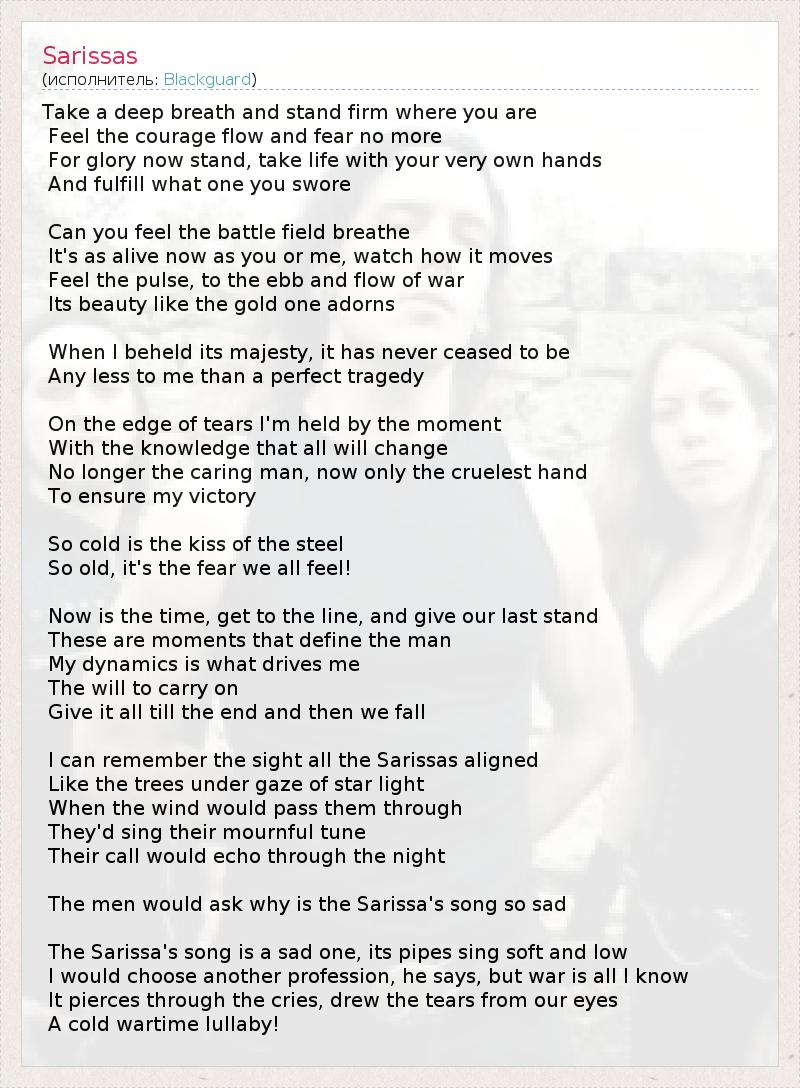 The Sarissa's song is a sad one, its pipes sing soft and low
