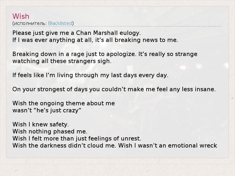 Wish the darkness didn't cloud me. Wish I wasn't an emotional wreck