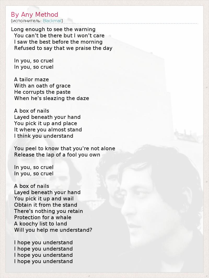 А как ты думаешь, о чем песня "By Any Method" ?