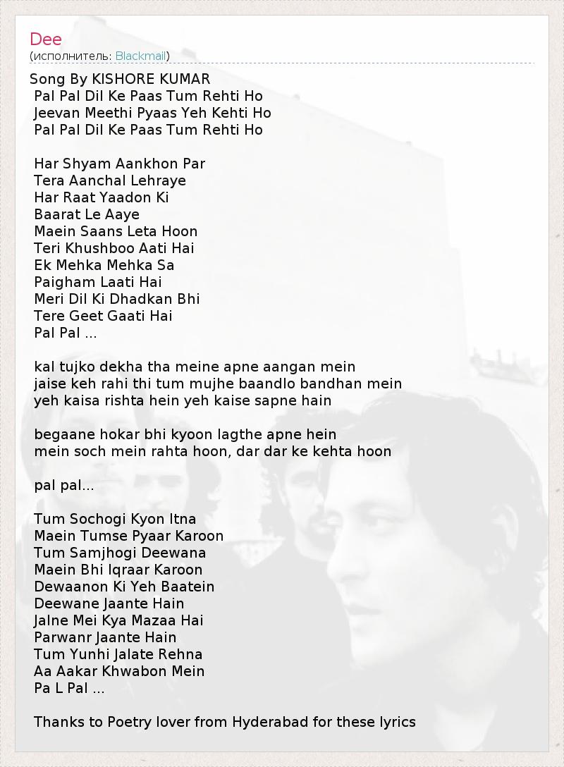 Thanks to Poetry lover from Hyderabad for these lyrics