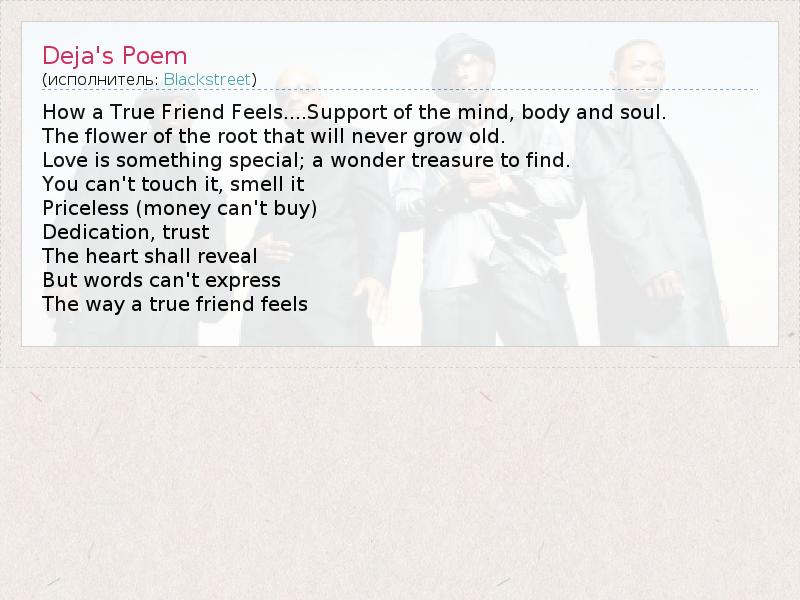 А как ты думаешь, о чем песня "Deja's Poem" ?