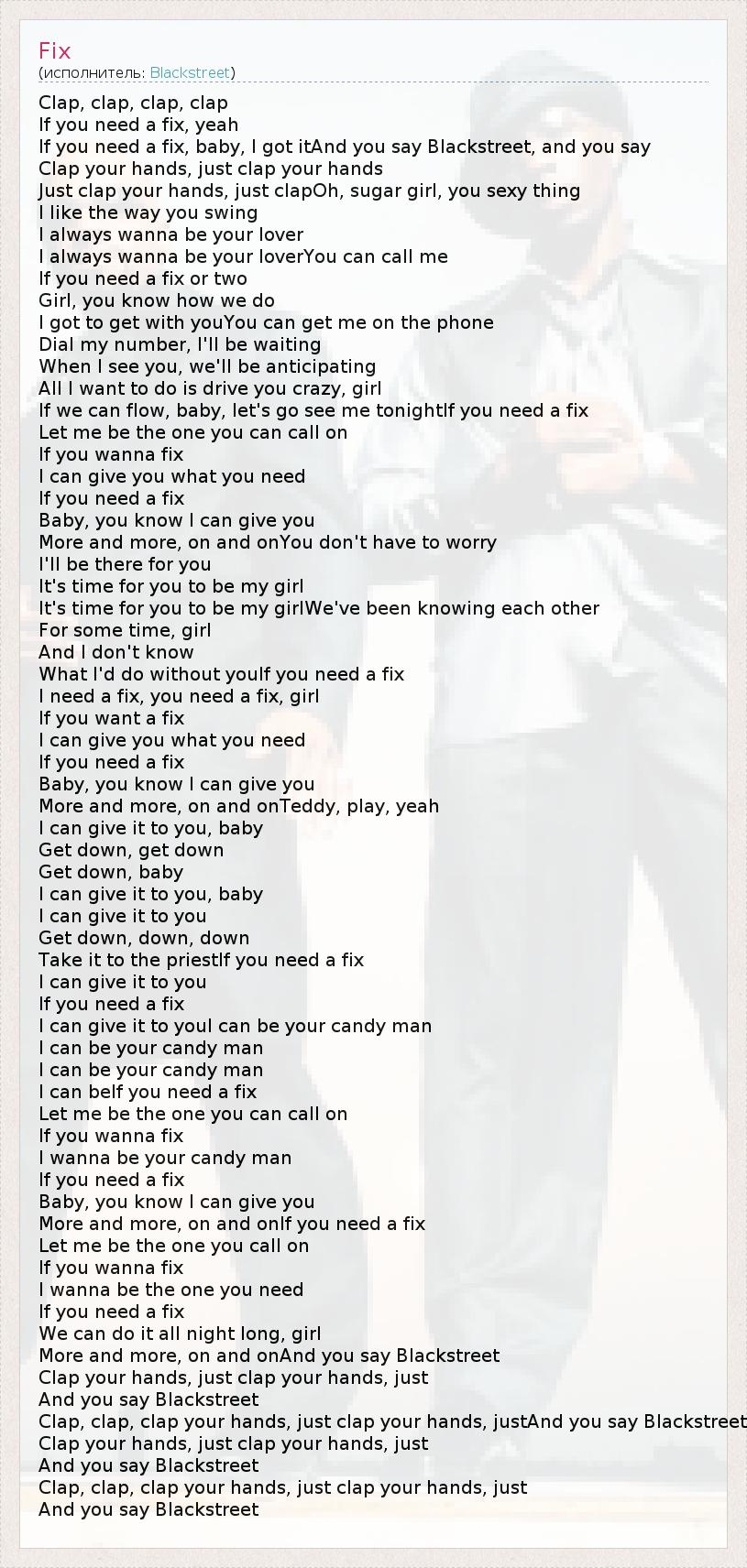 If you need a fix, baby, I got itAnd you say Blackstreet, and you say