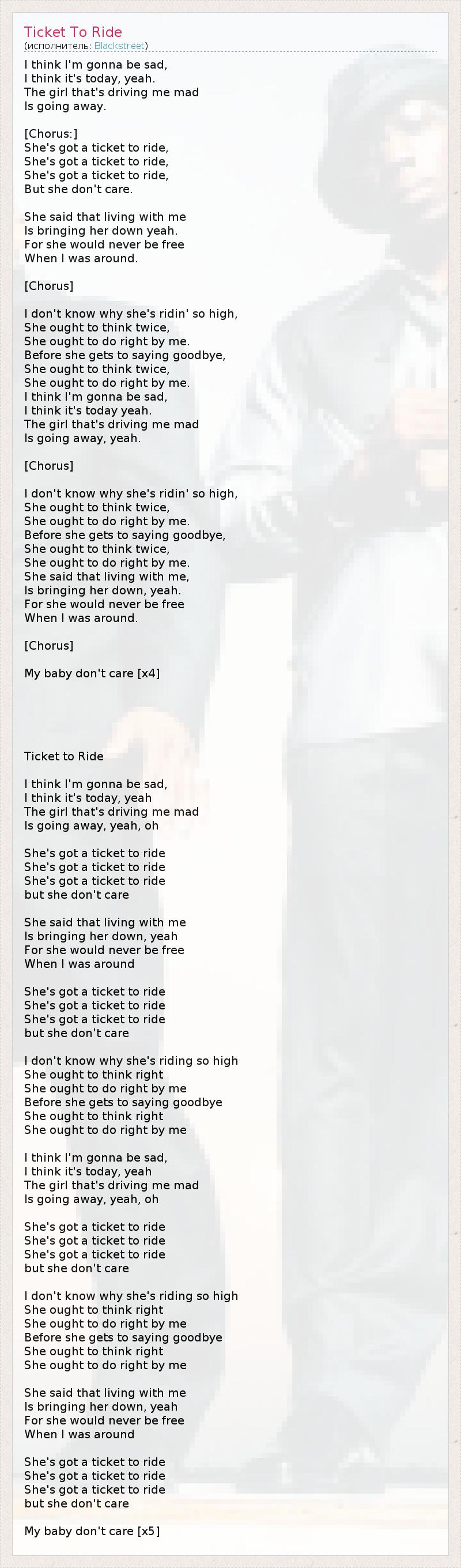 А как ты думаешь, о чем песня "Ticket To Ride" ?