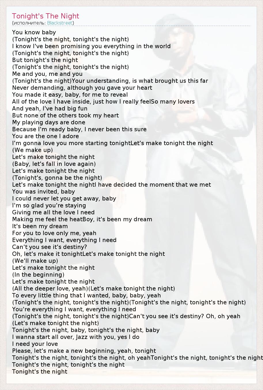 А как ты думаешь, о чем песня "Tonight's The Night" ?