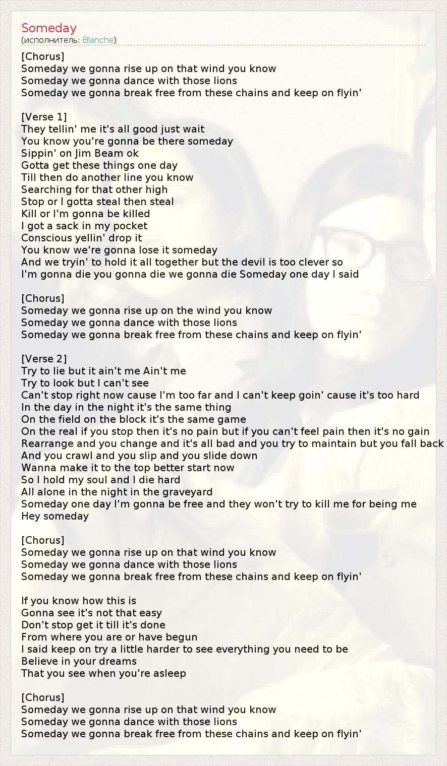 Someday one day I'm gonna be free and they won't try to kill me for being me